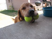 playing retrieve with Alex and his tennis balls, he is good about you taking