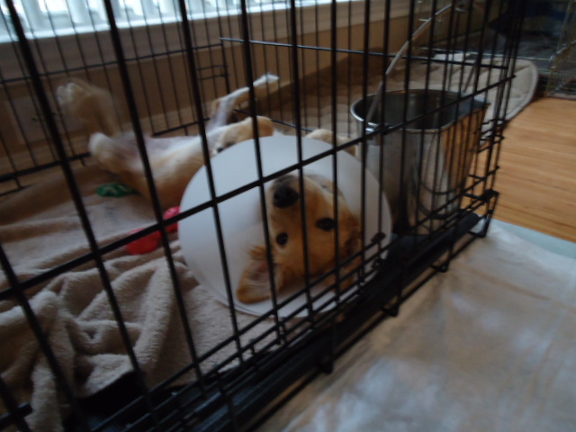 she recovers: she has to be calm inside (crate at first, then ex-pen or baby