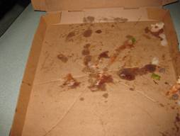 A : Empty pizza box, which only moments before held half a pizza.