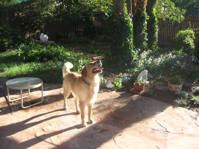 Traveler really doesn’t like the crate, so we’ll be leaving him to roam about when we are out and see how he does. (Keep your fingers crossed.) He is becoming more responsive to commands (sit, wait, come) but he only wants to do so much. He will need lots of practice!—and for sure he needs a home where his people are around a lot and want to spend time with him, who love to pet him and give him attention, and who can also be consistent with him. He needs a routine and consistency.