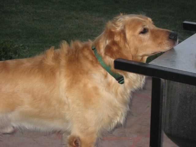 He doesn’t beg while we eat dinner, BUT if the pantry door is left even the slightest bit open (or does not latch all the way) Traveler will take whatever he can grab! He’ll also poke his nose in trash cans and pluck out this & that. In general, though, he is very calm inside the house, staying mostly where I am. Typically sleeps through the night on our bedroom floor, though if the door is open, he’ll wander back and forth a bit.