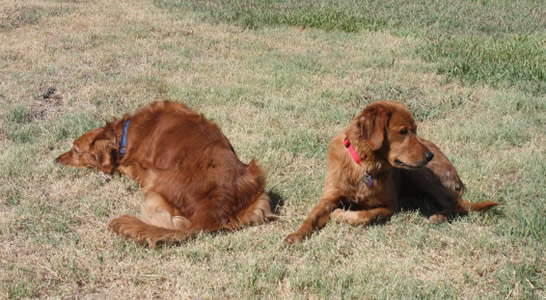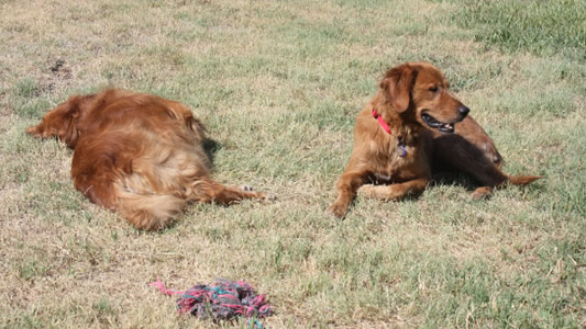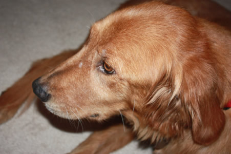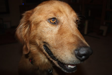 We continue to be amazed at Troy's directability and his skills and commands. He truly anticipates you! He does what you tell him to, even if he really doesn't want to. (Exception: coming away from somebody who's petting him on the head. His goes completely deaf in that situation.) He’s a very loving, great Golden. Patient, smart, outgoing but not pushy about it. Activity level is low-to-moderate at this point, but we think he'll get more active and strong once he's medically fine—and when this endless summer finally does end. We’d say that he’s gotta have a house where folks are around a lot. He’s clearly not a one-person dog, or an absent-family dog. Apartments are likely out, since he does still tend to bark when left alone. He's gentle and directable, wants to please; so small kids, elderly likely just fine. Acreage or a country home would be wonderful for Troy! He just wants to be an active part of a big, loving family, I think.