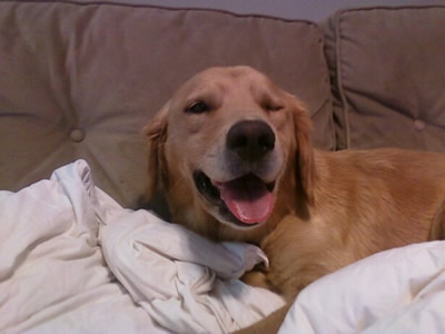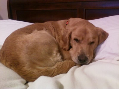 “She seems to like children and is gentle around them,” says her foster mom. “She’s sweet around other dogs but basically indifferent, just a little timid at first when meeting dogs she doesn't know. She’s more interested in people. She has absolutely no interest in retrieving or playing fetch! She does, however, like to climb into the plastic kiddie pool to cool off. She likes to sleep in the bed VERY close to me. She’s a little snuggle bug!”