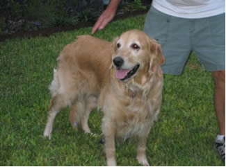 She is doing great, we get her stiches out later this week. She is sweet with my 6-month-old poodle, but I keep her separate from my 3-year-old male Golden: they just don’t like each other when they’re too close! Part of that might have been just that she felt so bad when she first arrived. Mostly she wants human attention, though. Everyone she meets is a new friend! She doesn’t jump up, but she likes to sneak up on the sofa next to you and lie on the floor at your feet. She goes willingly in to her crate or baby-gated area when asked, too. She is a good "guard dog" as she barks loudly when she hears noises or the doorbell! She loves to roll on her back in the grass and tote around her rawhide chew bone. She’s gentle, calm, good, and sweet. She’d love to be the center of attention in her new home.