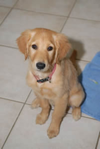 Violet is also a love, and so cute with her pensive eyes and long, soft ears. She will put the two tiny ones in their place if they pounce on her too much, but doesn't get ugly with them. She’s very people-oriented and loves, loves, loves attention and lying in your lap. She doesn't have that chunky little puppy build; she is much leaner and lankier, and we suspect she may be one of those “mini” size Goldens when she grows up. This little gal is definitely feeling under the weather—she wants to play, but wears out quickly. She doesn’t have much appetite at all, and we wonder if she isn’t anemic; she had lots of ticks on her when she arrived in care. She’ll be going to the vet pronto for diagnostics, and we all hope she’s feeling up to snuff soon.