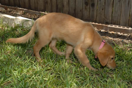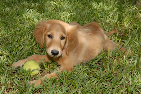 Buttercups, sweetpeas, violets and jasmine…. in SEPTEMBER? That’s exactly right! Not as unusual as it sounds when you take into account that THESE pretty blossoms are adorable Golden puppies. All four girls were brought to the same South Texas shelter as strays, but beyond that, we don’t have a clue where they came from… or even if they all came from the same place. (Maybe from a backyard breeder clearing out the excess “inventory”?) They’re all young, but two of them (sisters Buttercup and Sweet Pea) are tiny, just 7 or 8 weeks old. Fine-boned, dainty Violet is a bit older, maybe 10 to 12 weeks; and Jasmine is the oldest, at 4 or 5 months.