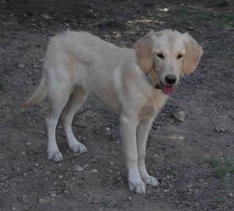 More what? More Goldens, of course! The very same day that one GRR team was motoring north for the Lockney puppy mill rescue, Jeanae was heading far south to pick up five MORE Goldens. One of them, baby Marigold, is a likely sister to our “Flower Girls” Buttercup and Sweetpea; somehow, she showed up at the shelter a few days later. As for the others—a few days earlier, Lisa had spotted a Craigslist posting featuring four pretty 5-month-olds. “I have 3 females (Summer, Belle, and Faith) and 1 male (Rocky) . Unexpectedly, this litter crept up on us. We really are just looking for a good home for these puppies.” When we contacted him, the owner was so relieved! He couldn’t support all those pups properly on his own (he had several more Goldens, too) and agreed to hand the quartet over to the same shelter where Marigold was staying, so that we could collect everyone at once.