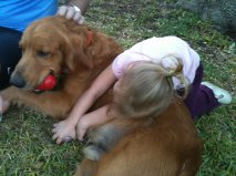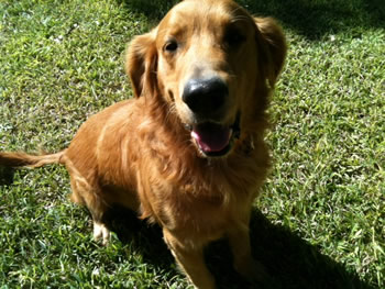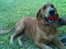 Stoney came to GRR from a family who could no longer give him the attention he needed. At 99 pounds of pure love, he is truly a keeper! He is a gentle giant, so great with the kids as they love on him, and just adores being with people. We’ve only had him for 24 hours, but so far we haven’t seen bad habits... no jumping, no counter-surfing, no chasing the cats, no chewing inappropriate things. He has picked up a couple of the kids’ toys but realizes right away they aren’t for dogs—but he’s great with his own toys, wants to play, likes to have something in his mouth at all times unless he’s resting. No accidents so far, though we’ve taken him out frequently, since we're not sure if he's 100 percent reliable. He does all right on the leash. He pulls some, and at his weight, that can feel like a lot! But we'll work with him on that. He doesn’t pay much attention to the dogs next door, even when they bark at him. And the only growl we’ve heard was when he walked by a mirror and saw his reflection! He froze and growled before finally walking away.