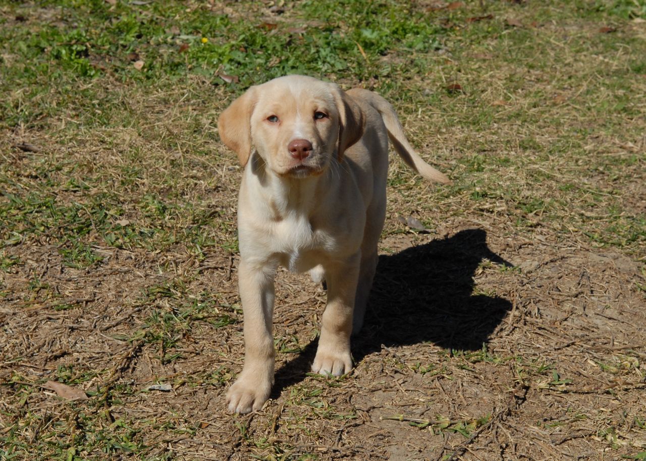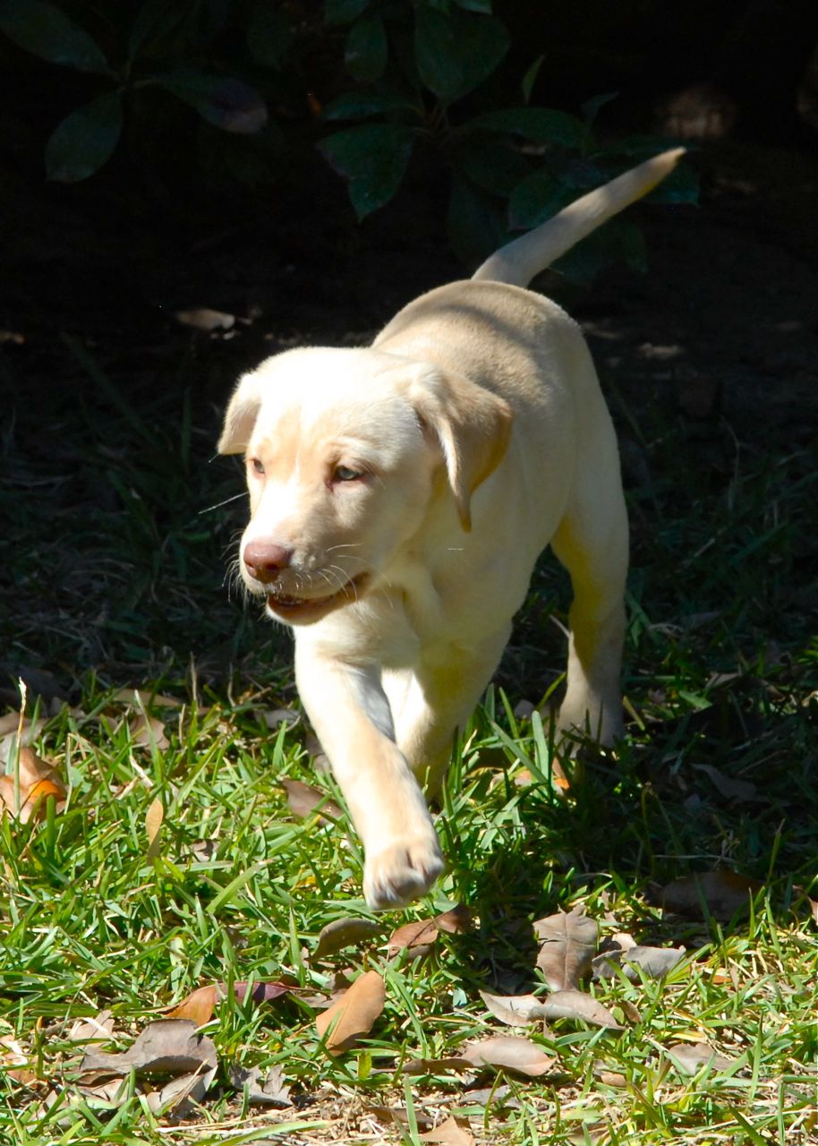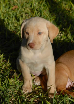 Cranberry is one of the most loving of the litter. All she wants to do is snuggle in and give kisses! She is a little bit darker than Grace and Blessing, but is still a very light color. She also has a little white on her face. She loves to snuggle with the other puppies, and is always right in the pile when they settle in for a nap. She loves to play but can calm down very quickly if you pick her up to love on her.