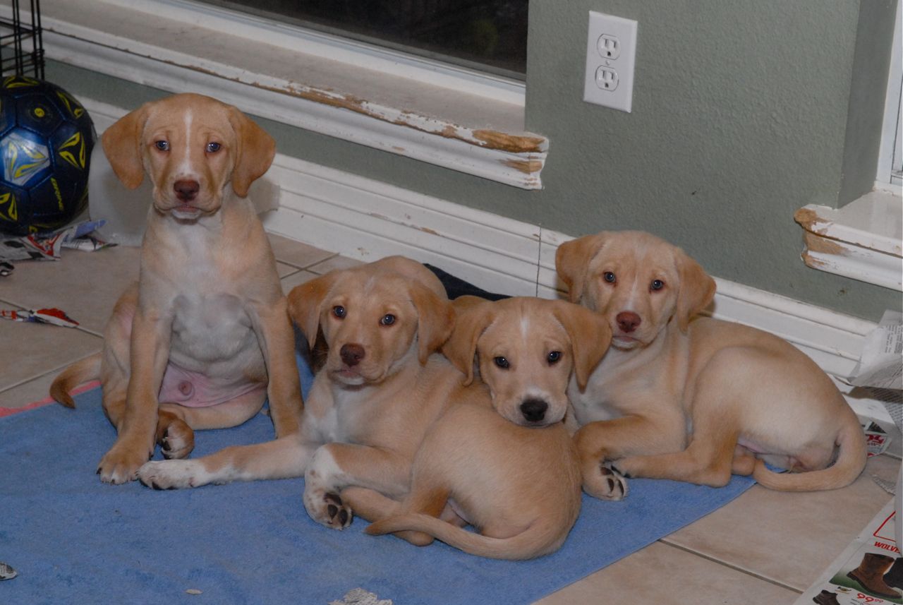To save the remaining pups, more aggressive treatment was in order. The vet came up with an antibiotic cocktail for us to use in the nebulizer. It took the help of several GRR folks and many phone calls to our wonderful vet network, but ultimately we were able to get our hands on the five ingredients for the cocktail (two of which aren’t readily available). Nebulizing treatments—with the pups all piled up in a big Tupperware tub full of mist, as well as being held in a parent’s lap one by one with their little muzzles in a breathing mask—continued three times a day for almost two very stressful weeks. Talk about round-the-clock care from a very dedicated foster family! Fortunately, the mixture worked—by the end of the course, they sounded almost normal. We then moved on to ten days or oral meds to make sure they didn’t back-slide.