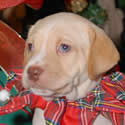 … and now, we’re more than thrilled to be able to watch seven happy, healthy-looking puppies playing and wrestling with each other. It's been two weeks since we've heard any coughs, or seen any discharge. We still have them under a microscope, watching for any new symptoms, but at the moment it looks like they’ve made it through their illness, and are now robust little kids. And hungry! (The reason they look so solemn in their holiday duds is that they’d just finished stuffing themselves and were feeling rather drowsy!)