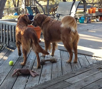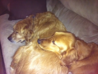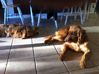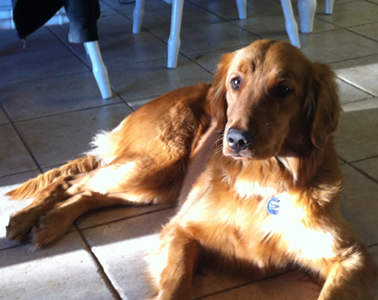 “Lost dog” ads and a shelter stay didn’t turn up an owner—and soon Holiday was a GRR dog, our very last Golden of 2011. Even better, she was able to move right in with a family who’d already adopted a GRR dog during the summer and were on the lookout for another. It’s working out perfectly. Her new mom says: