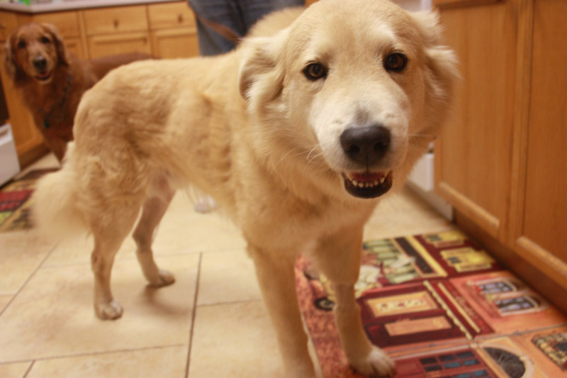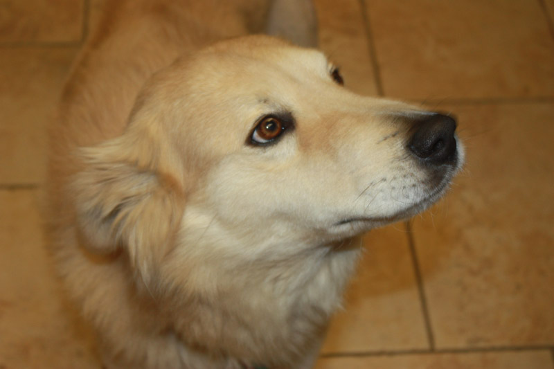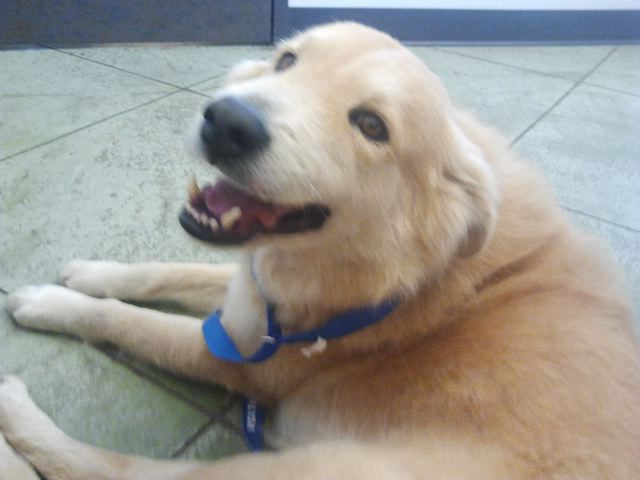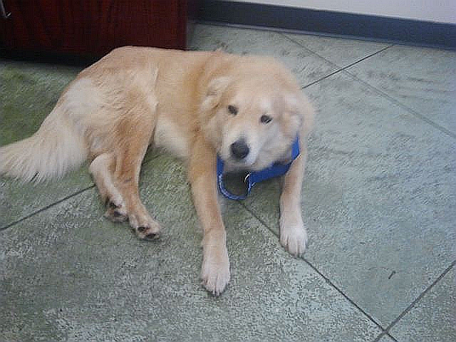 the shelter floor, with the text: “Beautiful Golden Retriever at Animal Control!