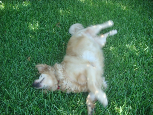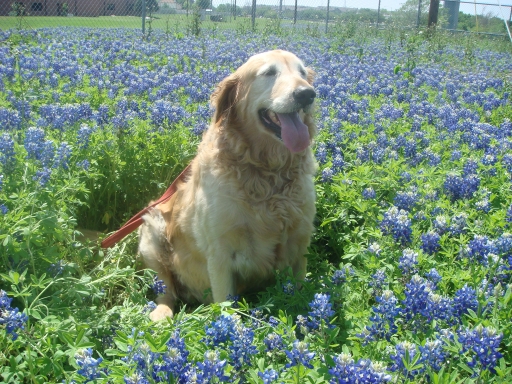 Check out our lovely Miss Peaches enjoying the bluebonnets and a good roll in some (finally) rain-soaked grass! That green-bean diet has really kicked in for our Miss Soon-Svelte-To-Be!