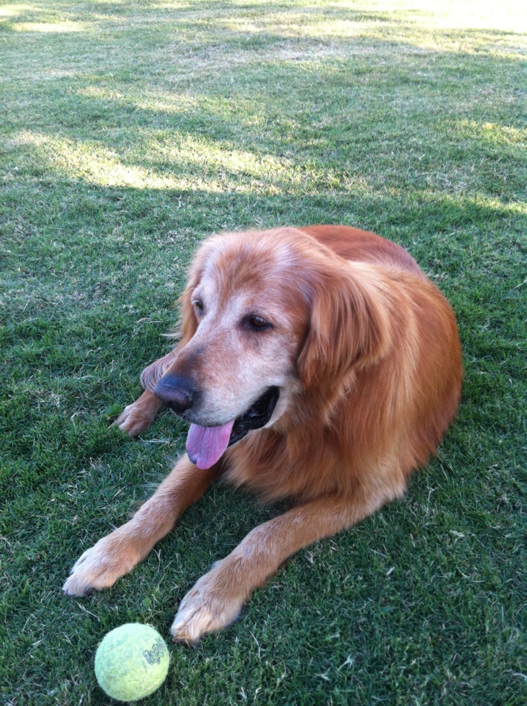 he is healthy? Good question. Yes, a 9-year-old Golden is no puppy… which means