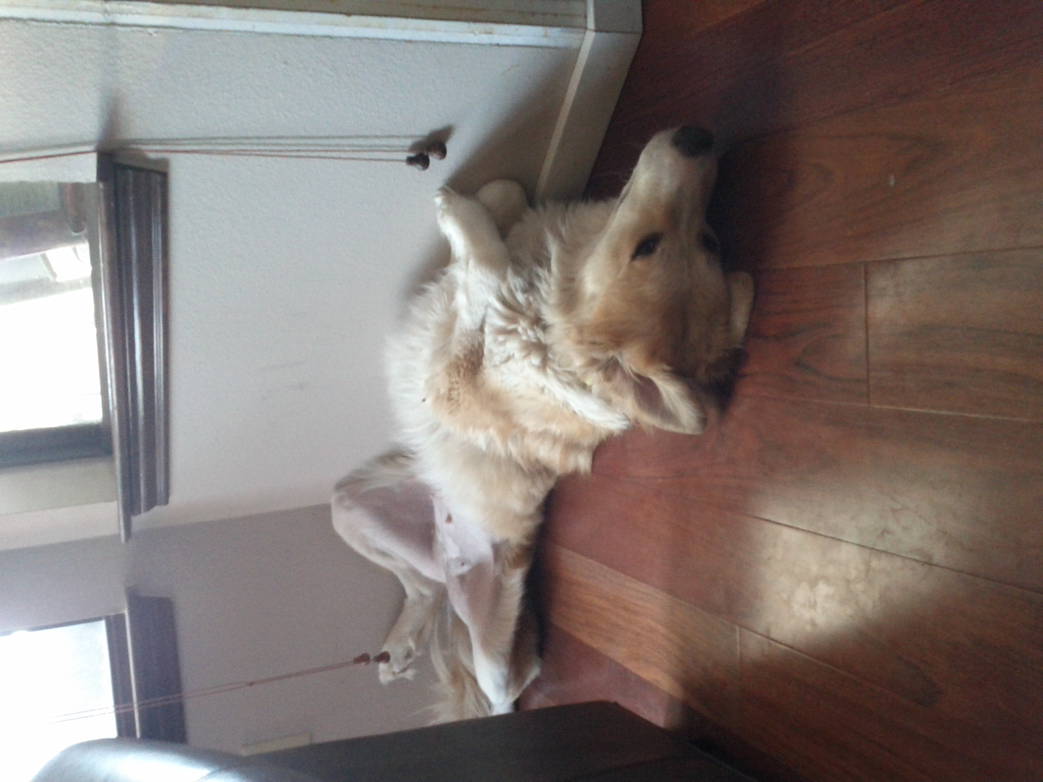 naps on her back, rolls around, and even tumbled right off the sofa the other
