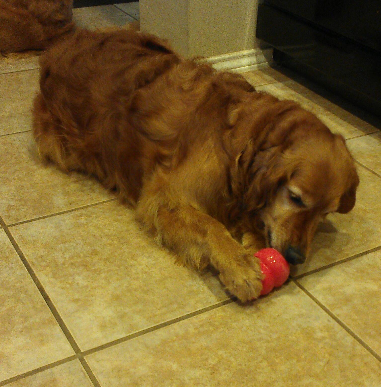 gets another Greenie after a fun brushing session.