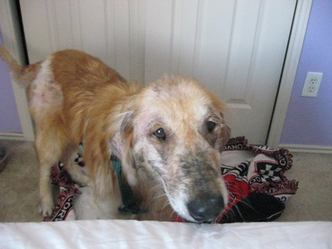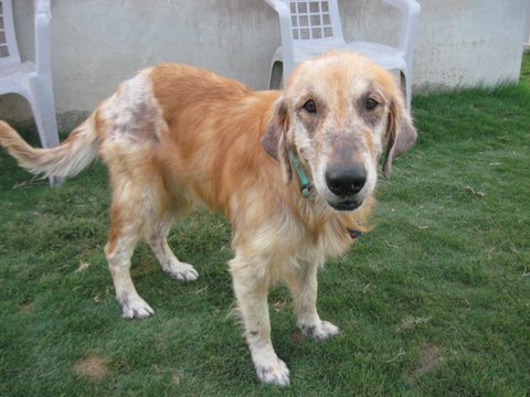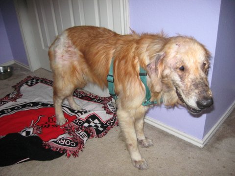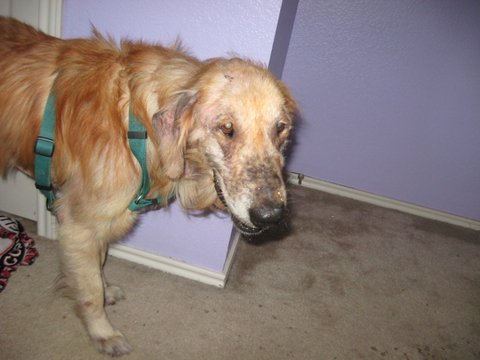 Golden Retriever.” She is so right! Yes, he has a bad case of sarcoptic mange,