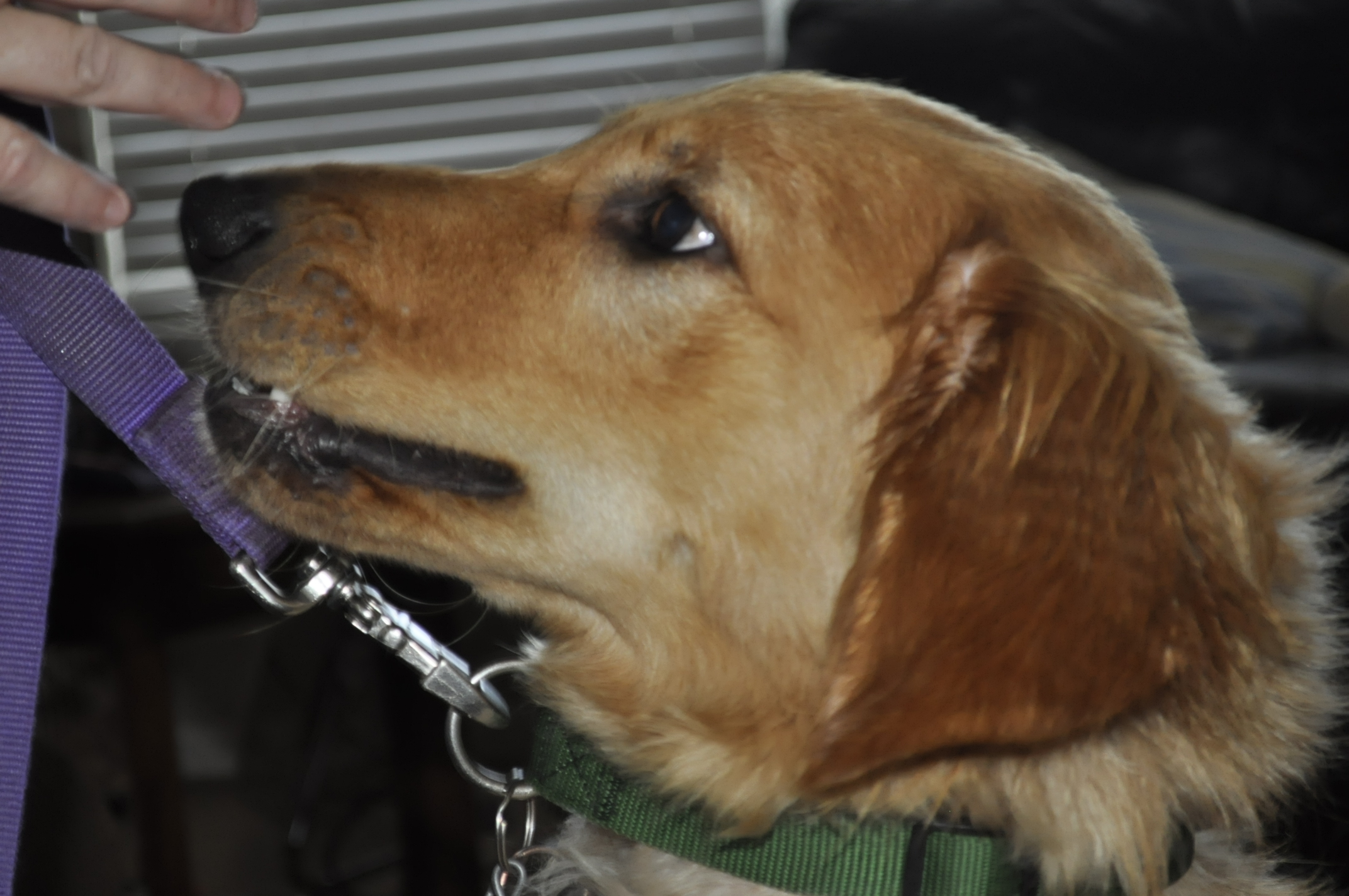 He’s your typical year-old Golden male—up for any adventure, but sometimes his need to explore can get him into trouble. He is still learning to follow basic commands; how to walk on the leash without pulling you down the road or suddenly plunging off to the side to check out something interesting; and that not every item he puts in his mouth is okay for him to chew on! It’s hard for him to resist “taste-testing” anything & everything, but he’s getting the idea that he needs to play with his own doggie toys and chew only on items that are made for him.