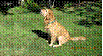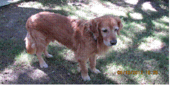 head, while he is eating; nor has he bothered our other Golden, Abby, while she
