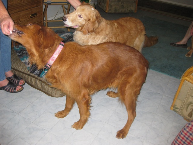 Candy off her feet. Candy has a trick knee and she really needs the calmer dogs.