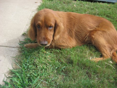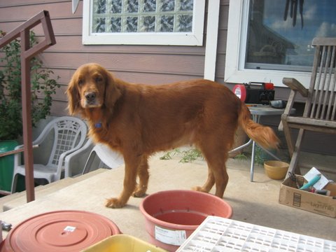 fringy ears, long legs, and dark red coat, Judy has an Irish Setter look to her.