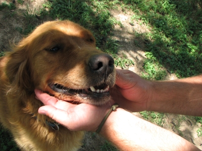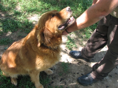 Golden relegated to the backyard; predictable issues with digging, barking,