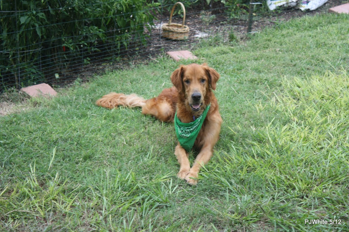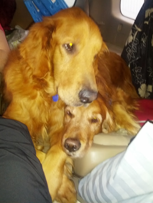 in the street stood an emaciated red Golden, soaked to the skin, without collar