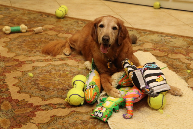 only dog with 100 toys on hand—a girl can never have enough.