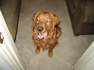 Duke is a great dog, a real people dog, seldom leaving your company