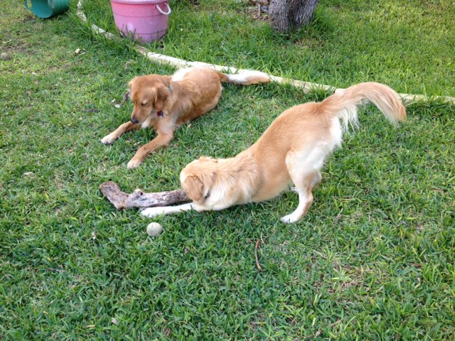 carry tennis balls around, and likes to play catch. She isn't terribly good at