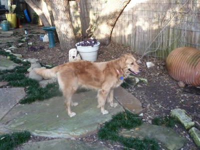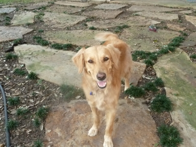 down the road to a foster home, where the resident Goldens have seen dozens of