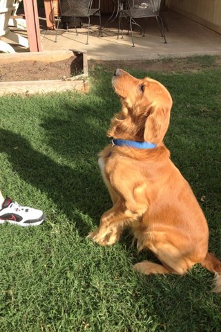 get up closer and will put his paws on the desk. We're teaching him, but he's