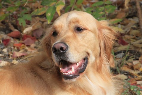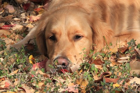 with three other Golden friends, and they share antlers and tennis balls, ride