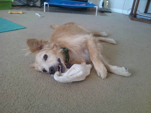 Choppers does love to chew, but his foster family has a ready supply of