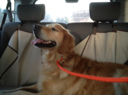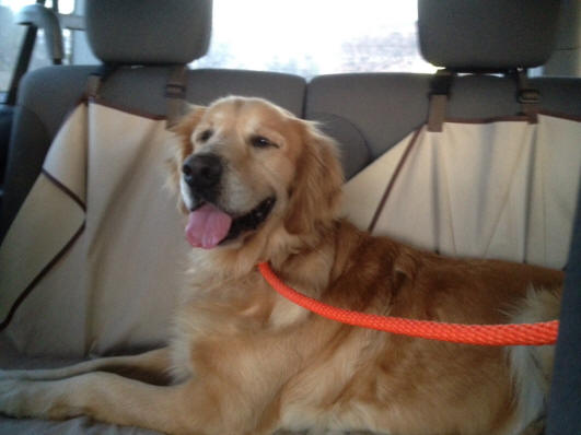 nicely in the back seat—obviously a seasoned traveler! Gets along well with the