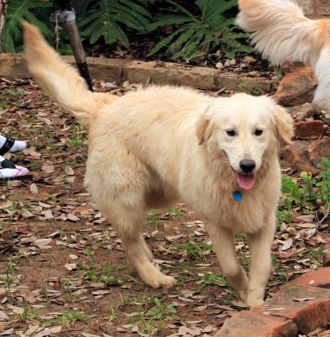 Primo loves tennis balls and enjoys toting around flip-flops & shoes.Gives them up fairly easily, too. Zig-zags around on lead but again,