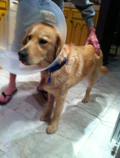 cone around his neck