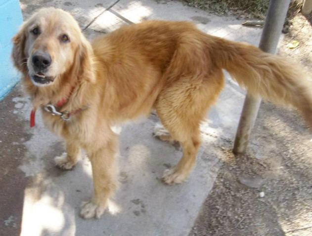 Thought to be an outside, country dog, Waldo came to the shelter quite bony with