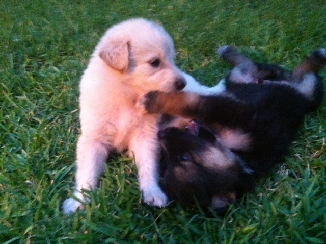 living the typical puppy life, namely rumbling with each other, making puddles,