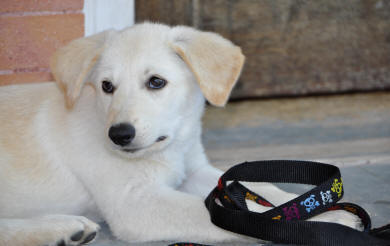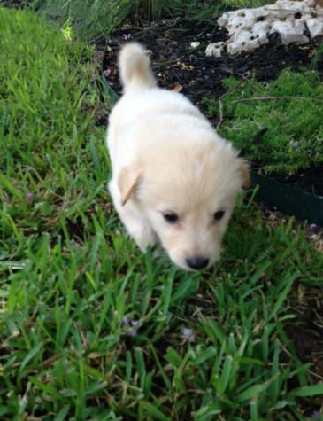 solid blonde pup with short fur (Erin looks a lot like her, but with a longer