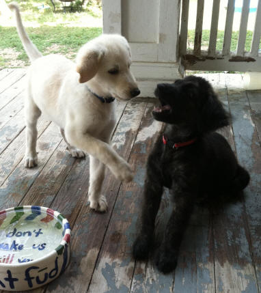 living the typical puppy life, namely rumbling with each other, making puddles,